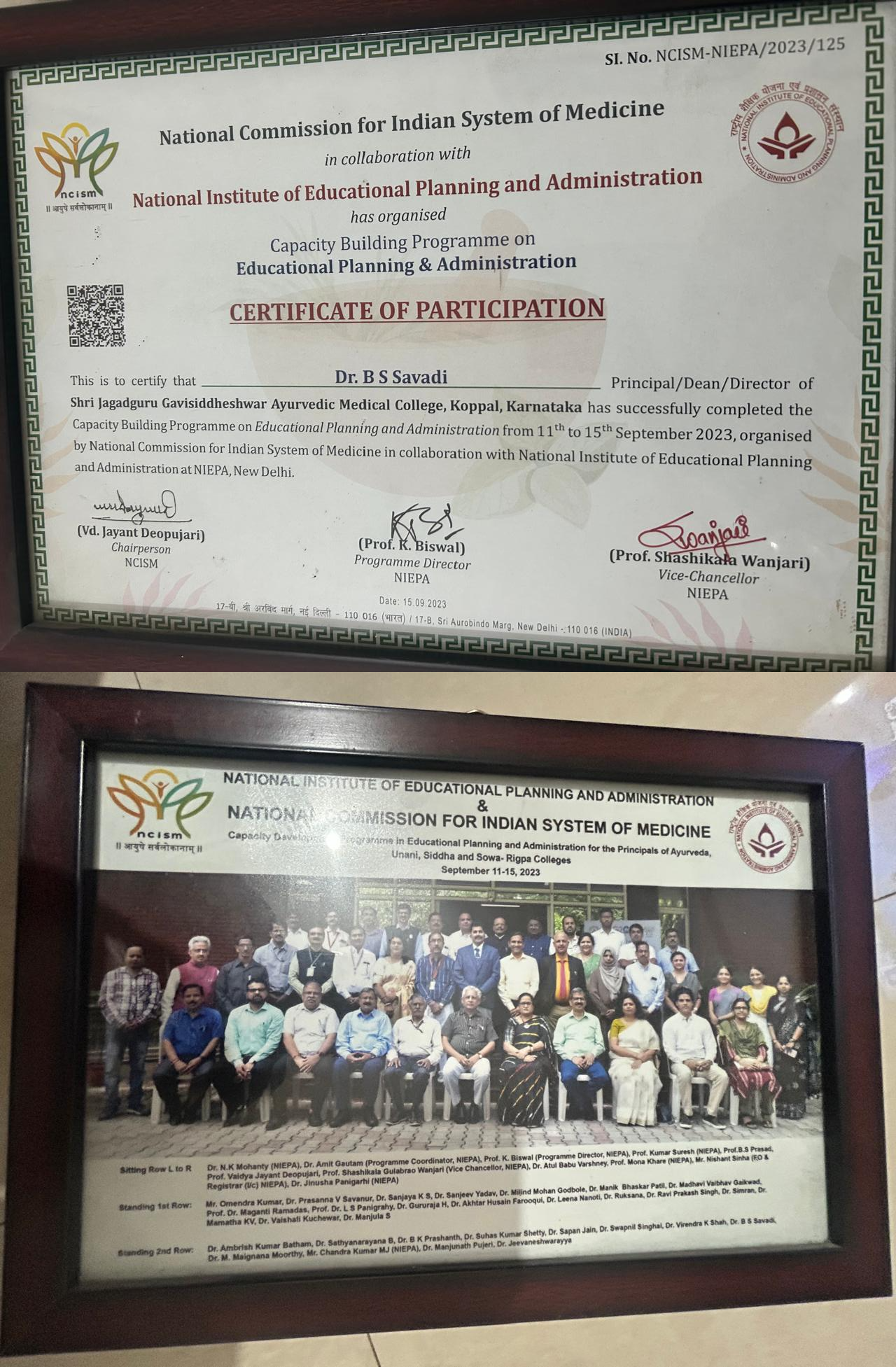 | NCISM MANDATES | Capacity Building Programme | Dr B S Savadi: 11 to 15 September 2023 Capacity Building Programme on Educational planing & Administration | View |