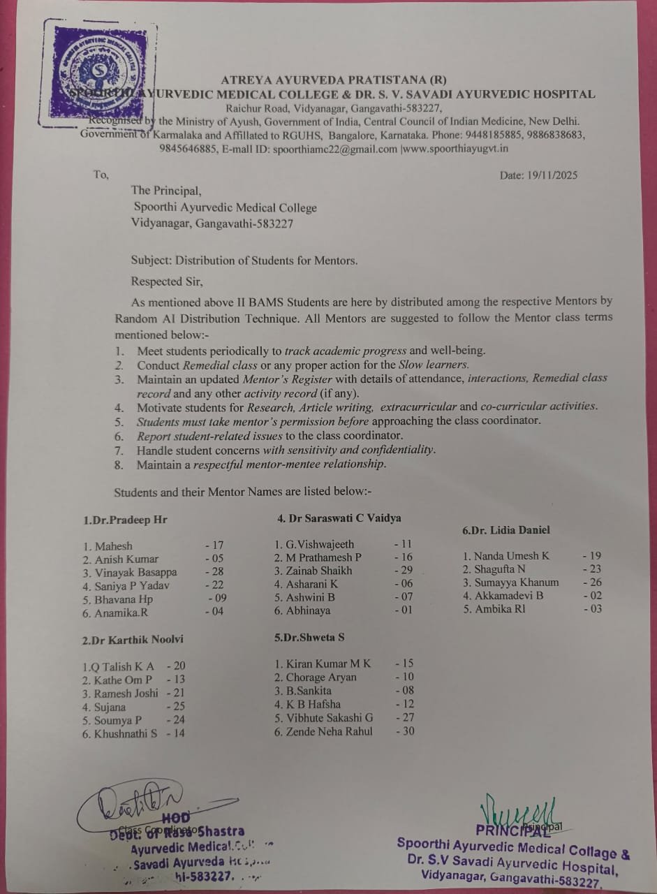 | NAAC | Mentor and Mentee List | IInd Professional BAMS Students 2025 | View |